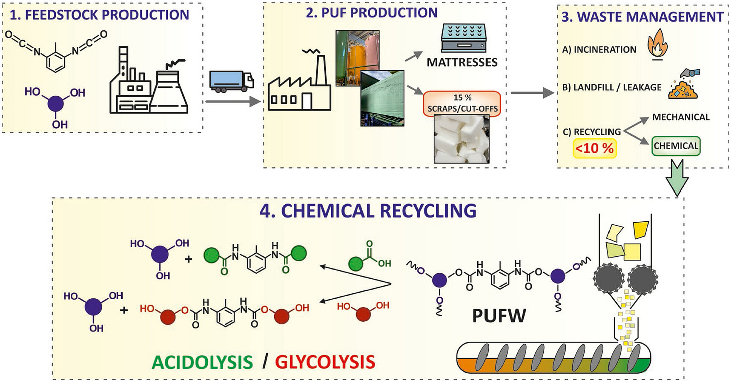 Velasco, Francisco, et al. "Closing the Loop on Polyurethane Foam Waste: Challenges, Emerging Technologies, and the Road to Sustainable Circularity." ACS Sustainable Chemistry & Engineering (2026).