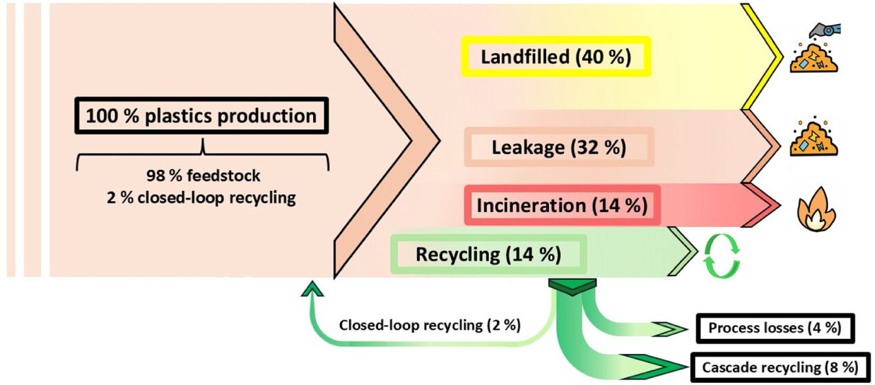 As the authors detail in their manuscript, the goals for plastic recycling and upcycling, set by the United Nations, have yet to be met. The majority of all polyurethane waste and plastic waste (in general) is not recycled responsibly. Moreover, only 14 percent of plastic (overall) finds its way to responsible recycling and the number for polyurethane is even less. Much more tellingly, more than 70 percent of plastic waste contaminates the biosphere. This is a huge problem.